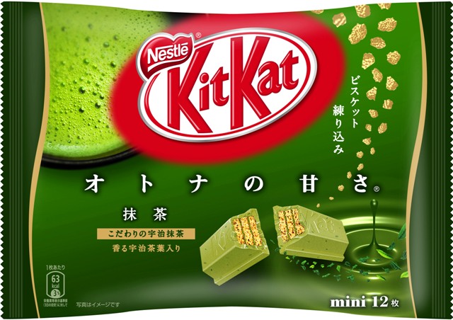 Шоколад Kitkat со вкусом зелёного чая 12 шт. * 11,3 г. – это известные шоколадные батончики Kitkat со вкусом матча, приготовленного из чайных листьев с плантаций Удзи (преф. Киото).