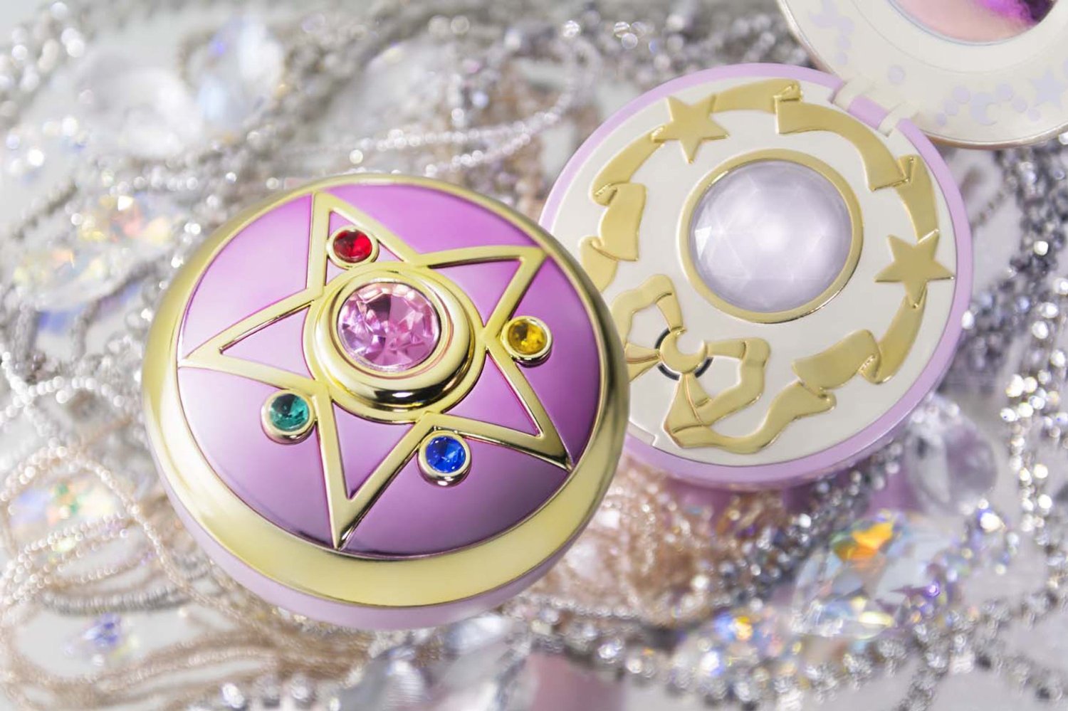 Музыкальный медальон Sailor Moon Crystal Star – это яркий и изящный медальон из анимэ-сериала Сейлор Мун, украшенный золотистыми узорами и цветным хрусталём. Внутри «Серебряного кристалла» имеется светодиод, переливающийся радужными цветами. Воспроизводит 3 мелодии и имеет 4 ступени регулировки громкости звука. Крышка медальона снимается.