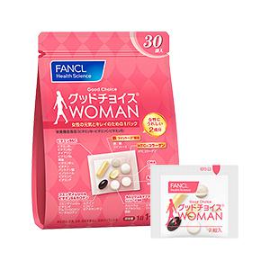 Витамины для женщин моложе 40 лет Fancl Good Choise W (Woman) – это идеально сбалансированные комплексные витамины для женщин до 40 лет, направленные на укрепление женского здоровья, поддержание красоты кожи, волос и ногтей. Содержат 26 витаминов и минералов, в том числе витамин В и С, кальций, магний, цинк, коэнзим Q10, витамин Е, каротин, докозагексаеновую кислоту, молочнокислые бактерии, НТС коллаген, железо. Одной упаковки хватает на 10-30 дней.