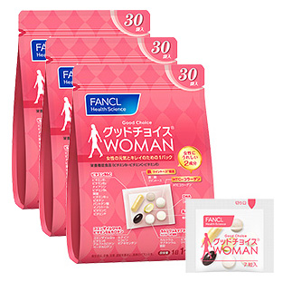 Витамины для женщин моложе 40 лет Fancl Good Choise W (Woman) – это идеально сбалансированные комплексные витамины для женщин до 40 лет, направленные на укрепление женского здоровья, поддержание красоты кожи, волос и ногтей. Содержат 26 витаминов и минералов, в том числе витамин В и С, кальций, магний, цинк, коэнзим Q10, витамин Е, каротин, докозагексаеновую кислоту, молочнокислые бактерии, НТС коллаген, железо. Данной упаковки хватает на 30-90 дней.